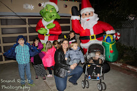 eight not so crazy nights of Hanukkah, we started getting in the Christmas mood right after Thanksgiving. Our family tradition is to kick off the holiday season by venturing downtown Seattle to see the Gingerbread Houses and the Teddy Bears. This year we added a few traditions in our own West Seattle. We went to the tree lighting ceremony where Micah had his first hot chocolate and I took Micah to meet Santa and sit on his lap at one of the stores in the Junction (that Santa happens to know my friend Heather's dad really well ;-) so it was extra fun talking with him). Micah was just in awe and pretty speechless upon meeting the jolly old elf. We didn't go full out on our own house lights this year since we'd be gone, so we just strung up a pretty pathetic little display on the porch, but it seemed to add to the holiday cheer a bit and of course Micah liked them.